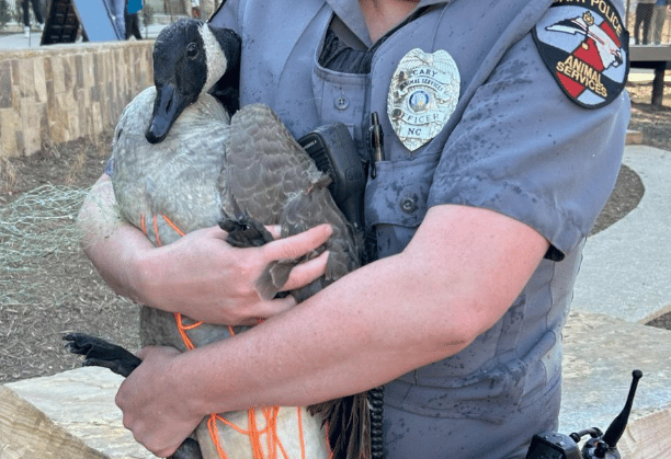 The quick-thinking actions of Cary Police Animal Services officials and concerned park visitors led to the rescue of a goose at Downtown Cary Park.